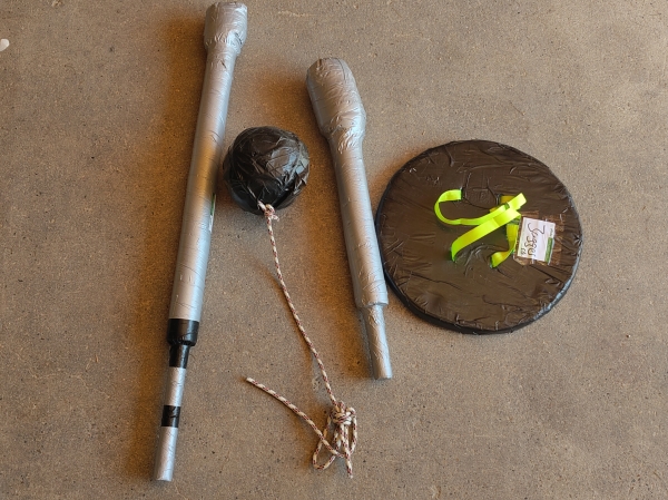 Pompfen sind vollständig gepolsterte Sportgeräte, die meist selbst gebaut werden. Für die Jungschar reicht eine vereinfachte, sichere Variante. Ich schreibe trotzdem mal die offiziellen Anforderungen auf.