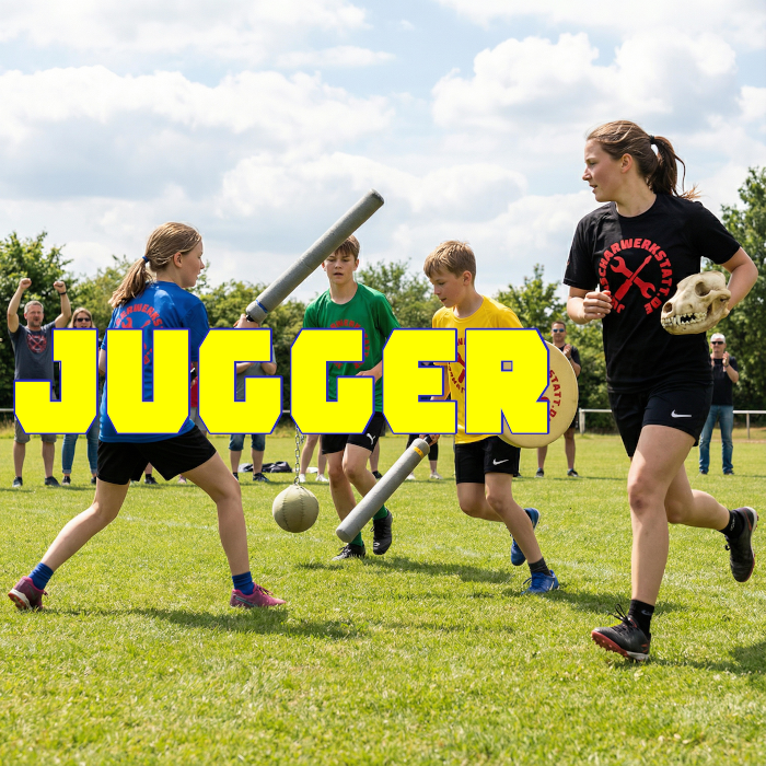 In den letzten Jahren wurde auf der AJC-Jungscharfreizeit von Silas G, Mara, Emmylene und Elias das Spiel Jugger gebaut und gespielt. Ursprünglich ist „The Game“ ein „sportlicher“ Wettbewerb aus dem Film „Die Jugger„. Dort hat das Spiel keinen Namen und die Spieler sind die Jugger. Der Film aus dem Jahr 1989 selbst ist ziemlich brutal und nicht für die Jungschar gedacht. Für die Sportart muss man den Film auch nicht unbedingt kennen.