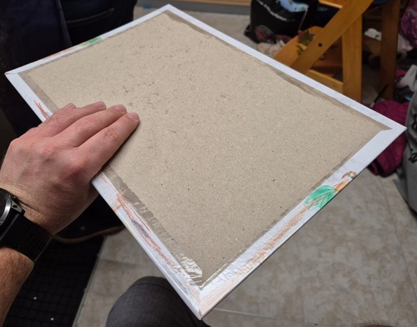 Vorlage ausdrucken auf Format der Wahl (A5/A4/A3…wir haben es auf A3), mit den Teilis farblich gestalten. Gestaltete Spielfelder mit Folie überziehen und auf eine 3 mm Graupappe aufleimen und pressen. Rückseite mit Elefantenhaut beleimen und ebenfalls pressen.