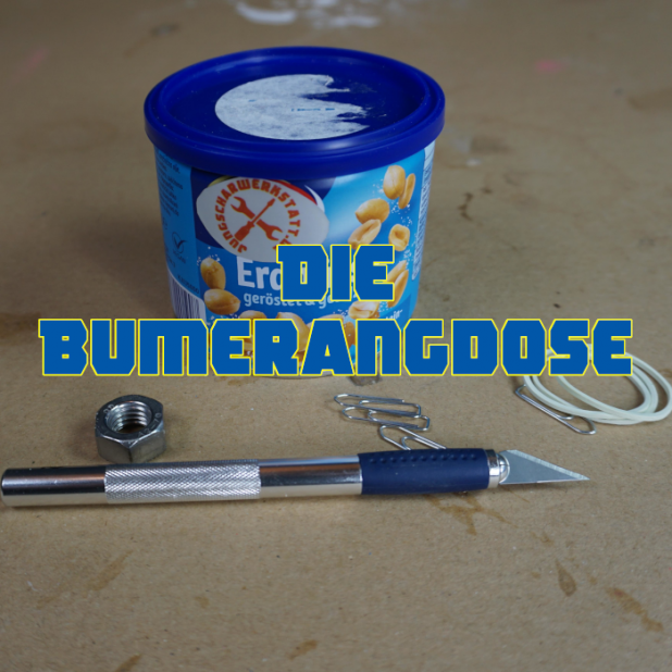Heute gibt es erst mal etwas ähnliches: Die Bumerangdose. Man rollt sie von sich weg, sie bleibt kurz stehen und kommt dann zurück.